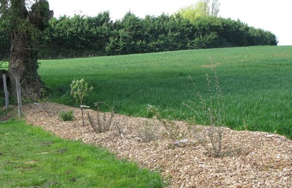 - Haie bocagère : pour une bonne efficacité de recouvrement jusqu’au développement foliaire des plants, disposer entre 10 à 15 cm.